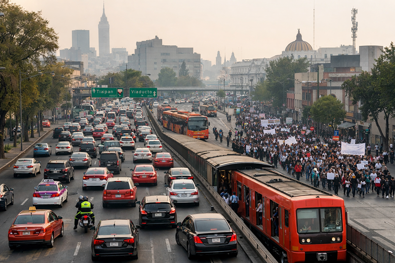 En cuanto a movilizaciones sociales, se prevén concentraciones en el primer cuadro de la ciudad y en inmediaciones de dependencias federales. Como es habitual, marchas o bloqueos pueden provocar cierres temporales en avenidas como Reforma, Juárez y 5 de Mayo. Las autoridades capitalinas suelen implementar cortes escalonados a la circulación para permitir el paso de contingentes, lo que genera afectaciones momentáneas.