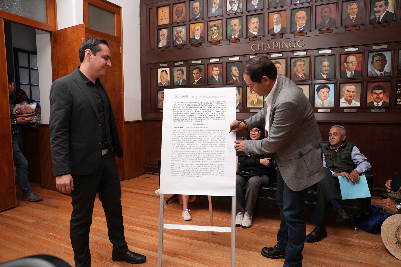 El acuerdo, signado por el rector de la Universidad Autónoma Chapingo, Ángel Garduño García, y el director general de la Comisión de Recursos Naturales y Desarrollo Rural (DGCORENADR), Humberto Adán Peña Fuentes, busca proteger el suelo de conservación, que representa el 59 % del territorio capitalino y es vital para la recarga de acuíferos, la biodiversidad y la producción de alimentos frescos.