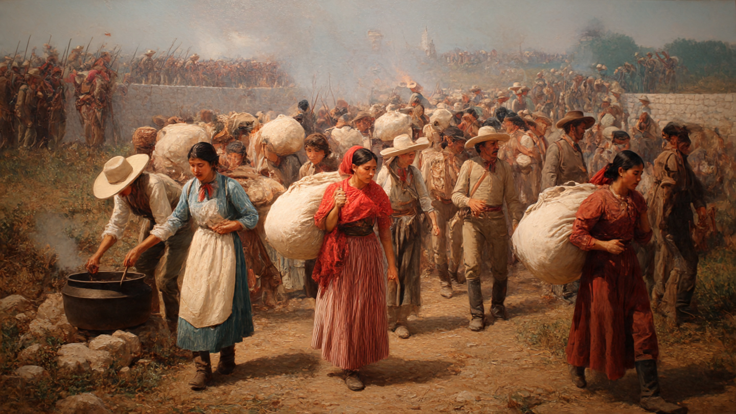 La revolución también tuvo rostros anónimos. Las soldaderas, conocidas como adelitas o valentinas, acompañaron a los ejércitos de Villa y Zapata cargando armas, cocinando y atendiendo heridos. Algunas, como Amalia Robles o María de la Luz Espinoza Barrera, alcanzaron rango militar, liderando tropas en combate. Sin su esfuerzo, los ejércitos revolucionarios simplemente no habrían sobrevivido.