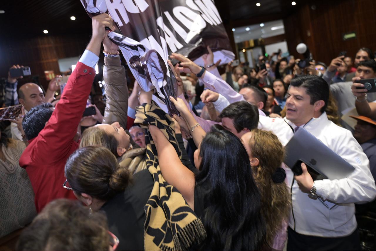 De un lado, los diputados del PRI defendían su derecho a manifestarse; del otro, los legisladores de Morena y del PT exigían respeto a las reglas del recinto y a la integridad de sus compañeras, luego de que algunas diputadas fueran empujadas durante el altercado.